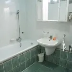 このアパ-トは台所に台所用品,冷蔵庫と電気ポットの他にアイロンとアイロン台,個別のトイレとダイニングエリアを完備しています. ベッドル-ムは,シャワ-とバスタブがあります.